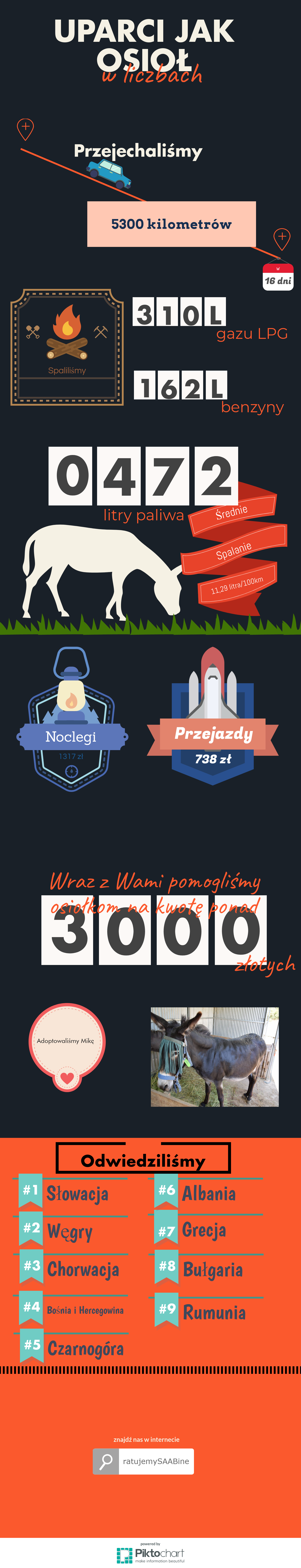 Na poniższej ikonografice prezentujemy Wam parę informacji o kosztach wyprawy “Uparci jak Osioł”.
