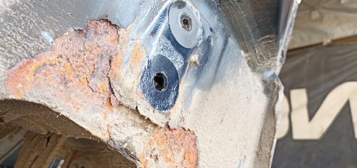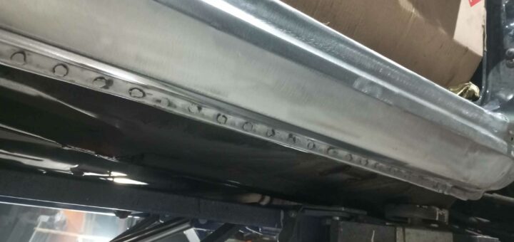 Udało się załatwić za 875 zł ponownie reparaturki tylnych nadkoli, a za 450 zł dosztukowane progi na zamówienie. Warsztat JDK Garage zaczął zdzierać pokolei warstwy do żywego, którego było nawet sporo. Jak powiedział Dawid...